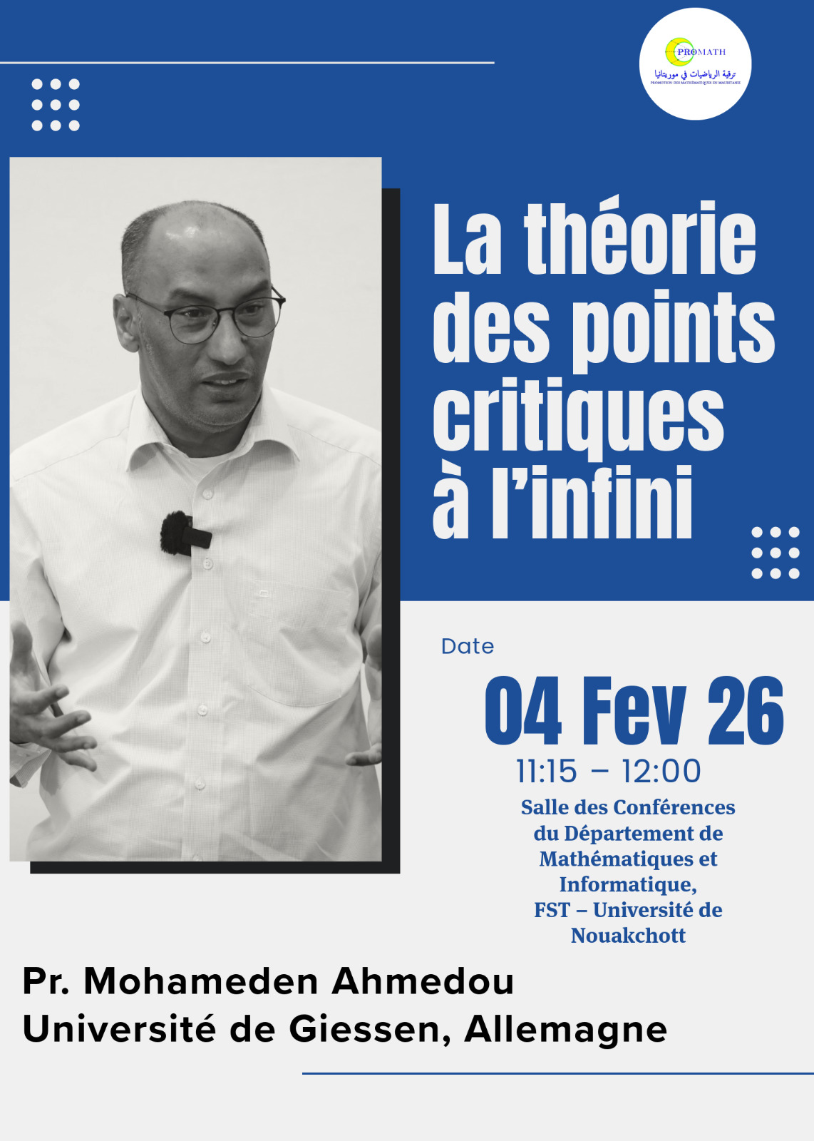 PROMATH est une association pour la promotion des Mathématiques en Mauritanie. Elle encourage l'excellence académique et soutient les talents.
